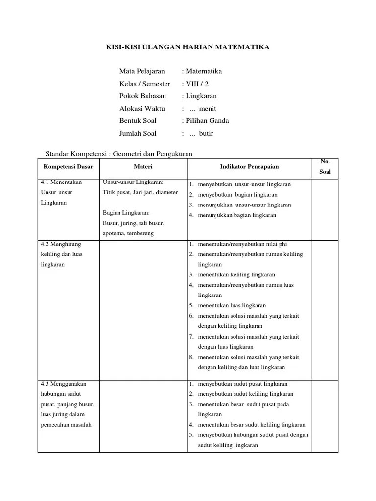 Matematika kelas 8 bab 7; 4.2 menghitung keliling dan luas bidang lingkaran. Pada pembahasan materi semester 2 kali ini kita sudah masuk di materi matematika kelas 8 bab 7 yang membahas tentang lingkaran. Prediksi soal uas matematika smp kelas 8 semester genap bsm. Materi matematika kelas 8 smpmts bab 6 lingkaran. Matematika smp kelas viii 129. Soal lingkaran setingkat smp ini merupakan pengembangan dari soal. Dalam lingkaran (tingkat smp, tepatnya dipelajari saat kelas 8) . Contoh soal garis singgung dalam lingkaran . Soal untuk menguji pemahaman matematika materi lingkaran bagi siswa kelas 8 semester 2. Masing 7 cm dan 2 cm.